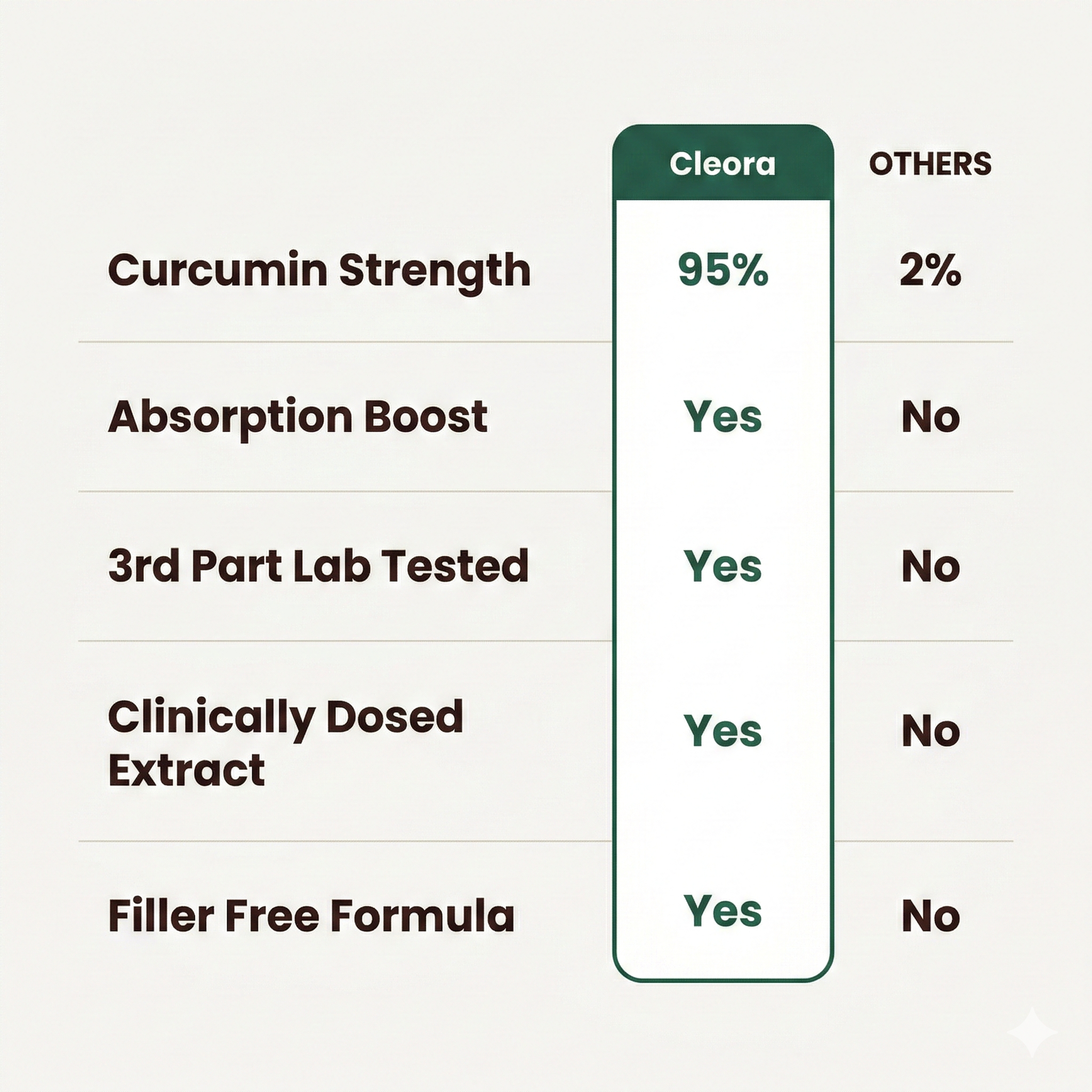 Unlike many brands that use weak powder, we use 95% curcumin extract, include BioPerine® for absorption, and verify quality through rigorous third-party testing. No fillers, no fluff—just real results.