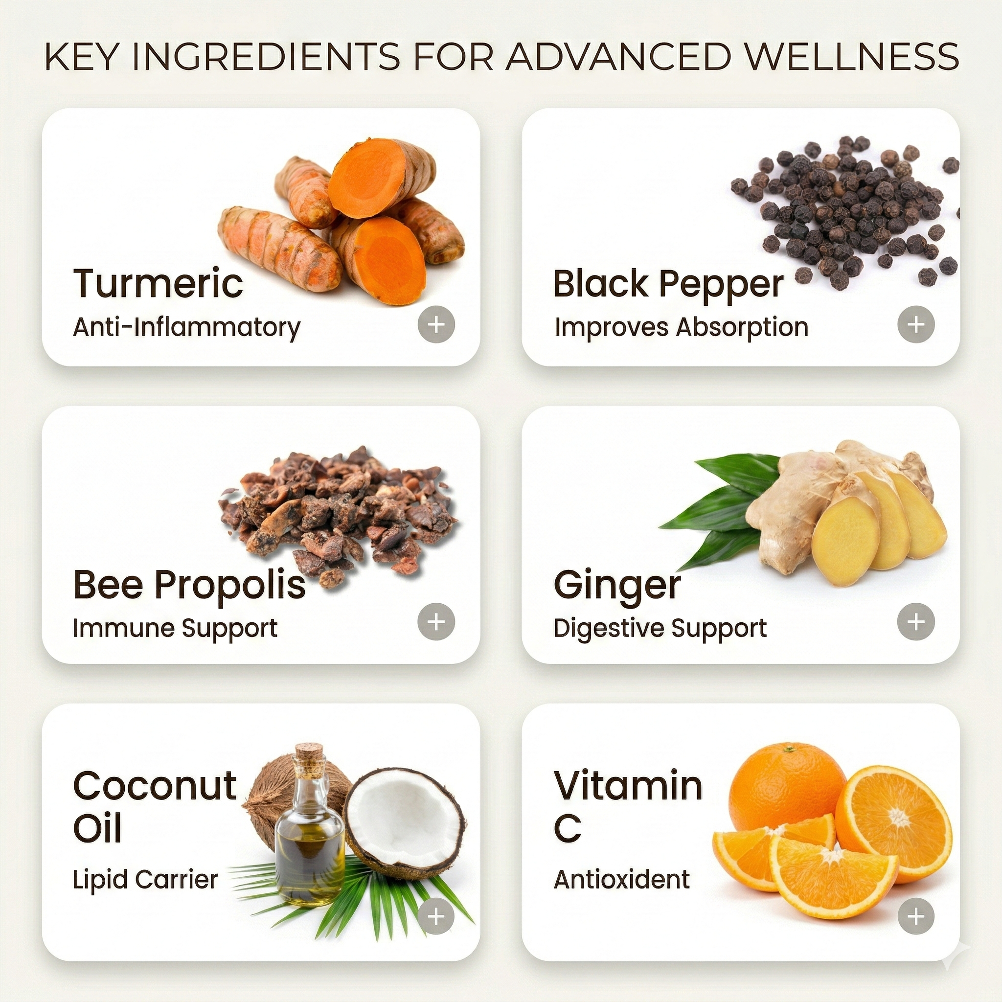 Curcumin is poorly absorbed on its own. Black pepper boosts absorption by up to 2000%, helping your body make full use of each dose.